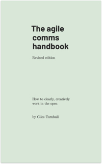 And, I’ve been rereading The agile comms handbook by Giles Turnbull. It’s an excellent how-to manual for organizational communications. On page 176, for example, Giles gives this advice:
